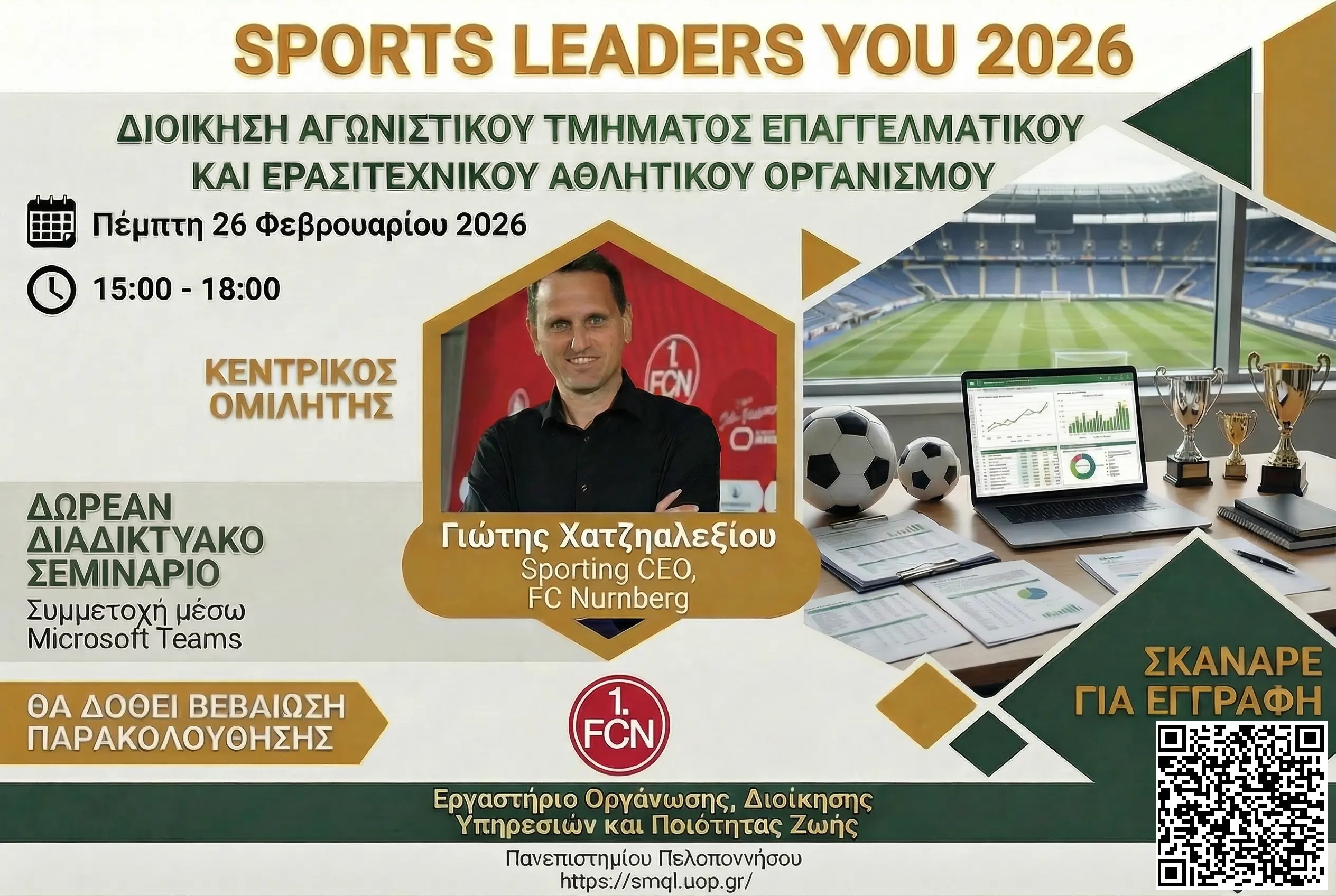 - 16.00-17.00 Αθανάσιος Στρίγκας, Καθηγητής Σύγχρονα μοντέλα ηγεσίας στον Ερασιτεχνικό Αθλητισμό